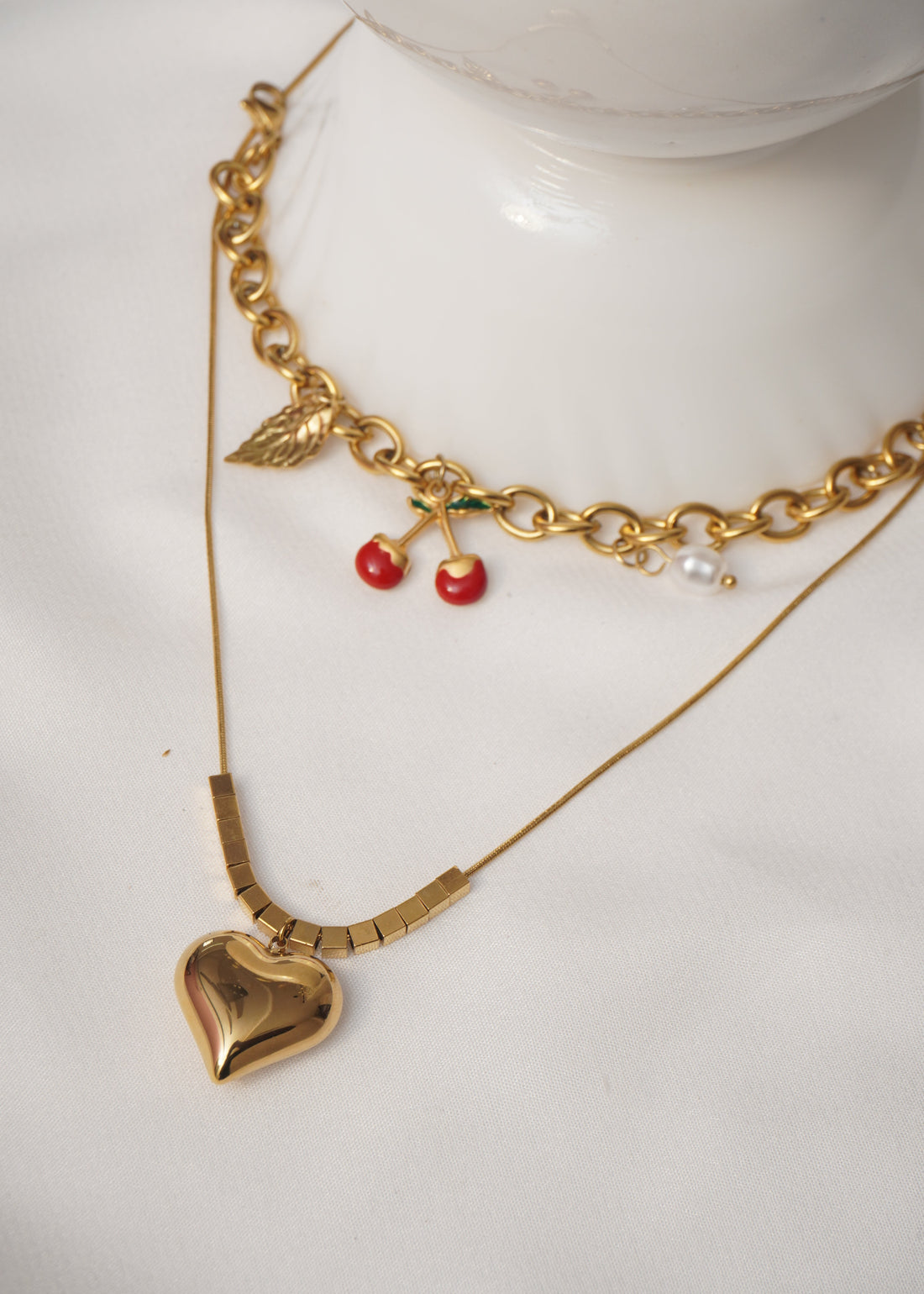Golden Love Lock Pendant and Cherry Whimsy Pendant Set