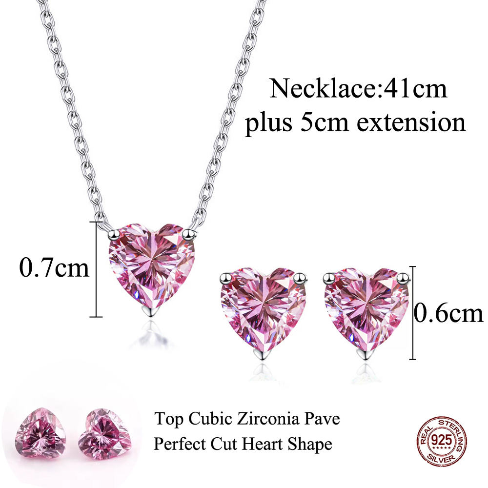 Express your affection with the Blush of Love Symphony set, crafted from 925 sterling silver and showcasing dazzling pink heart-cut cubic zirconia stones. This elegant necklace and matching stud earrings capture the essence of romance, adding a sparkling touch to any outfit and making your heartfelt gesture unforgettable.