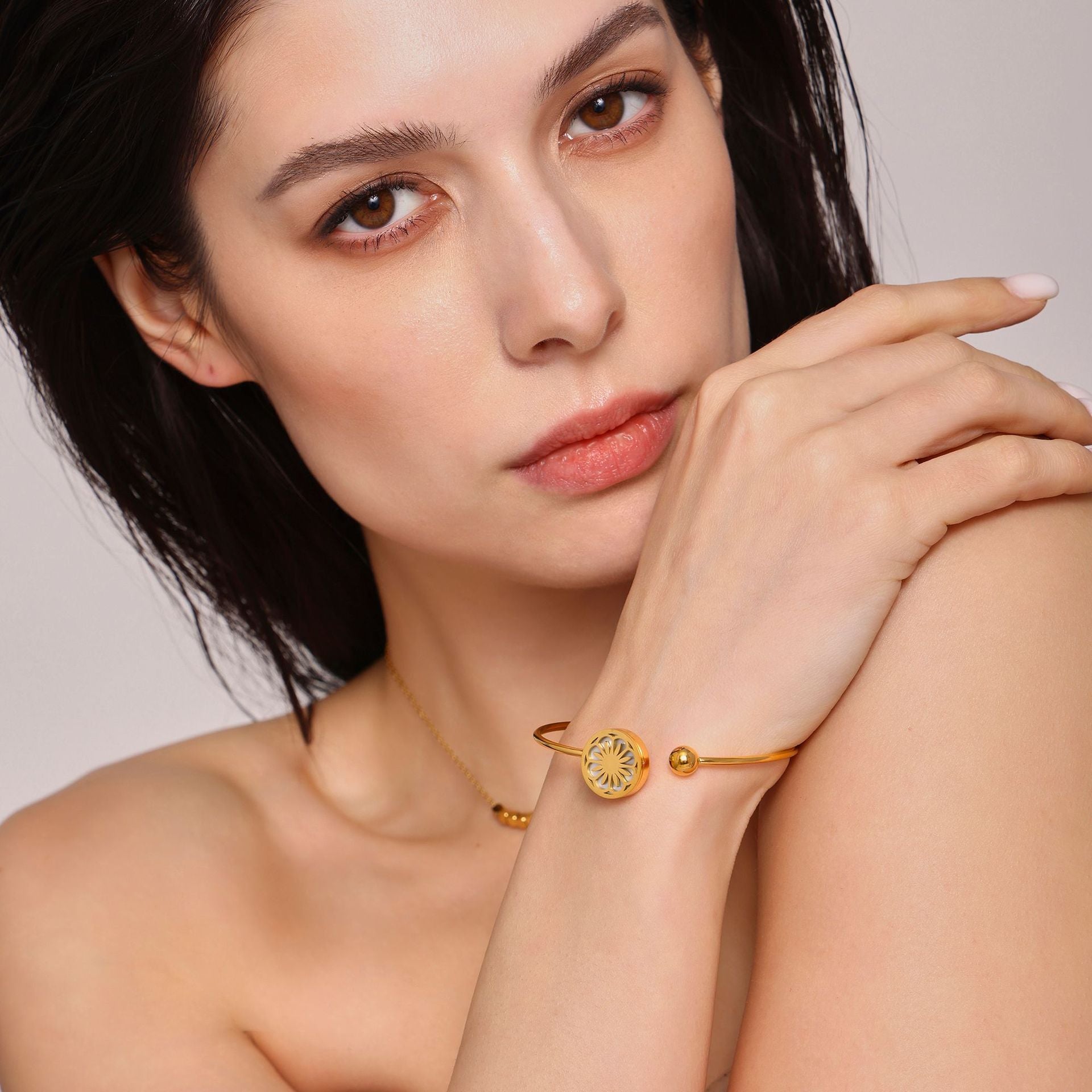 We use high-grade 316L stainless steel as the base, coated with 18K gold using IP (Ion Plating) technology. This ensures a long-lasting shine, resistance to tarnish, and skin-friendly wear.