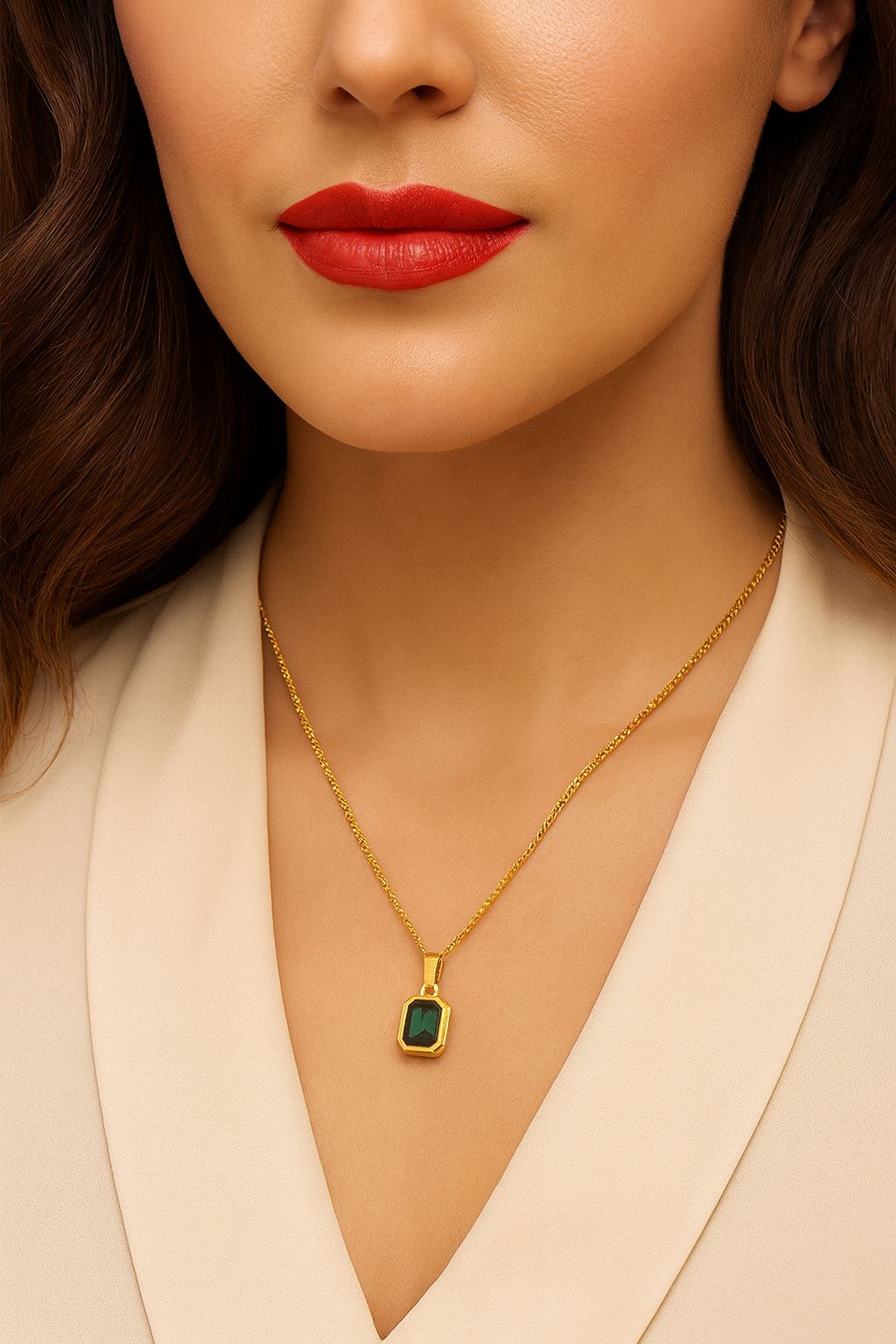 Ocean Bloom Studs and Emerald Cut Pendant set