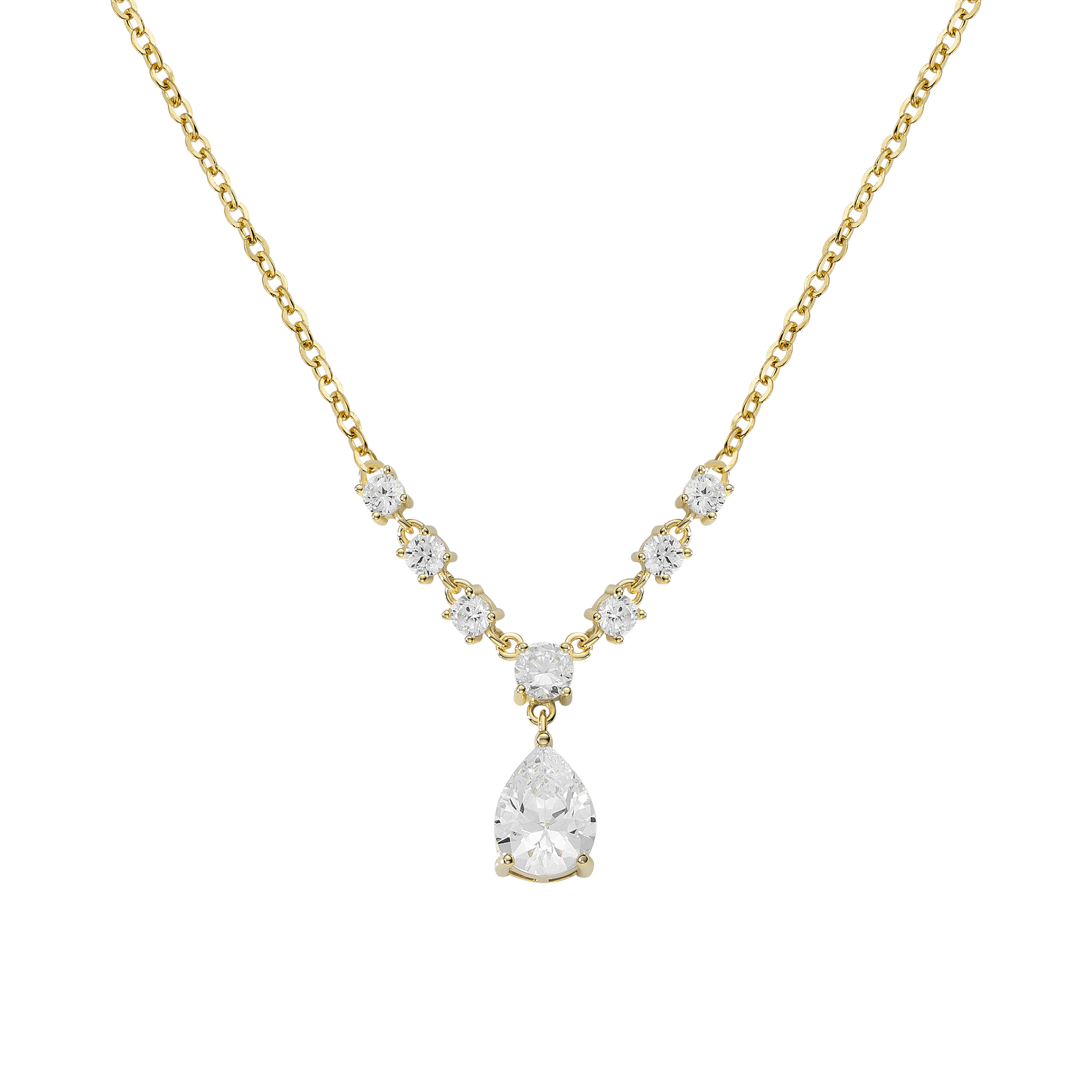 Elevate your style with the Starlight Cubic Silver - Zircon set, crafted from luminous 925 sterling silver. Its elegant V-shaped design is adorned with sparkling Marquise-cut cubic zirconia stones, leading to a captivating pear-cut centerpiece. This necklace offers refined sophistication, perfect for adding a subtle yet striking touch to any ensemble.