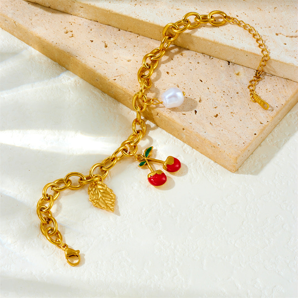 Turquoise Sol Drops and Cherry Whimsy Charm Bracelet