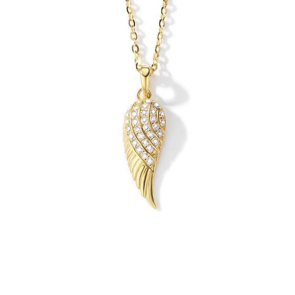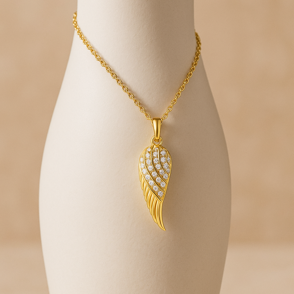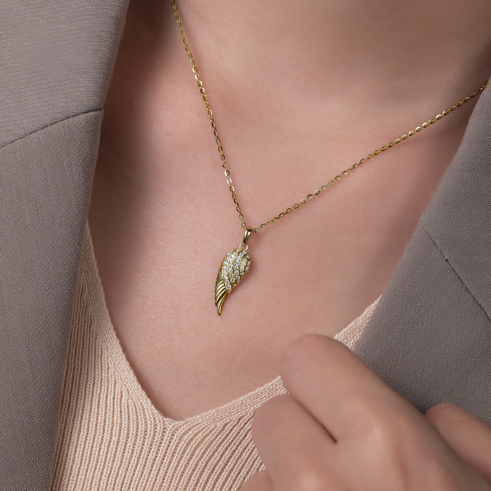 Elevate your style and spirit with the Wings of Eternity pendant. Crafted from genuine 925 sterling silver and coated with thick 0.3micron 18K gold, its delicately curved angel wing is embellished with shimmering cubic zirconia, capturing the essence of freedom, hope, and protection. This timeless piece not only enhances your look but also serves as a meaningful symbol to inspire and uplift you every day.